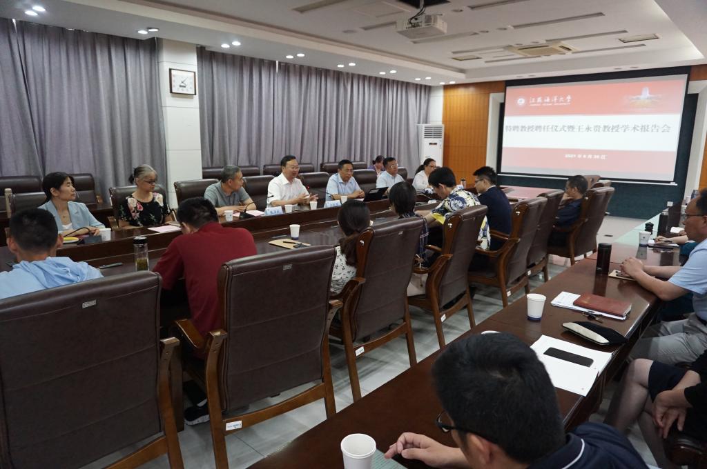 6月30日,教育部长江学者王永贵受聘为我校特聘教授,并作学术报告。聘任仪式在苍梧校区文渊楼会议室举行。校长宁晓明出席聘任仪式,马克思主义学院党总支书记张学武主持聘任仪式,马克思主义学院全体教师参加仪式并聆听了王永贵教授的报告。