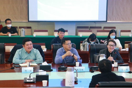 韩教授以自己从事人文社科研究的经历,和在座教师们分享了他在国家社科基金申报及评审过程中总结和凝练出的成功经验:从项目指南如何选用、研究项目如何确定选题、课题组成员如何选取、申报书各项内容如何填写、各申报细节如何处理等各方面详细的对申报国家社科基金进行了全面指导。报告内容详实、语言幽默风趣并辅以实际案例,讲解深入透彻,具有极强的启发性和指导性。会议采取线上线下同步的方式,受到参会老师的一致肯定和好评。会后部分老师就课题申报具体事项继续与韩教授进行了交流和探讨,并请韩教授对自己的申报材料进行指导。