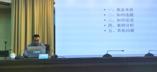 商学院院长孙军为全体学员做了题为“对国家社科申请的认识与理解”的学术报告,孙院长从国家社科基金项目本质、如何选题、如何构建研究框架、如何凝练创新点、大胆亮出主要观点和研究基础的相关性等几个方面,结合自身立项成功的经验,向学员们介绍了国家社科基金申报书填写的要领和注意事项,条理清晰、重点突出、报告简练、内容精彩,对学员们具有很好的指导意义。